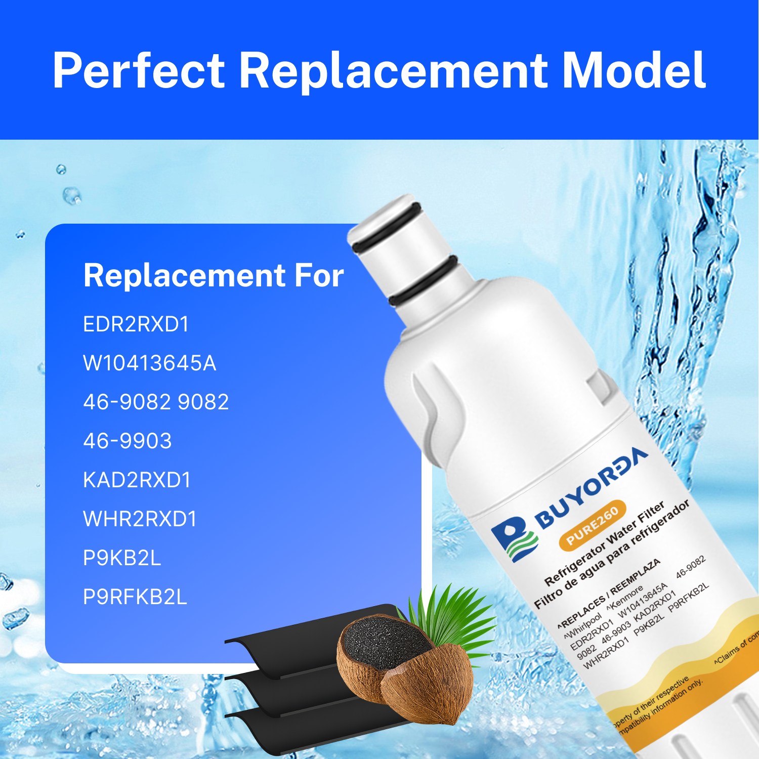 BUYORDA EDR2RXD1,W10413645A Water Filter Replacement, is easy to install,It can be installed quickly and easily without any special tools.