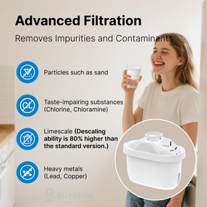 Effective Reduction: Removes chlorine, fluoride, limescale, heavy metals, and taste-impairing substances.