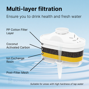 Buyorda Alkaline Water Filter Replacement Pitcher Cartridge 7 Stage Filter Reduce Chlorine Fluoride Enhanced Version For Drinking Water